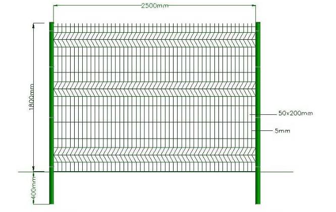 3D fence panel is a type of welded wire mesh. It is made of high quality low carbon steel wire, galvanized wire or stainless steel wire connected to metal posts. 3D fence panel has V-shaped bending curves, which look modern and attractive. The sturdy and sleek fence panel is mainly used for security protection in construction site, residential building, sports field, warehouse, highway or airport service area, railway station, etc.