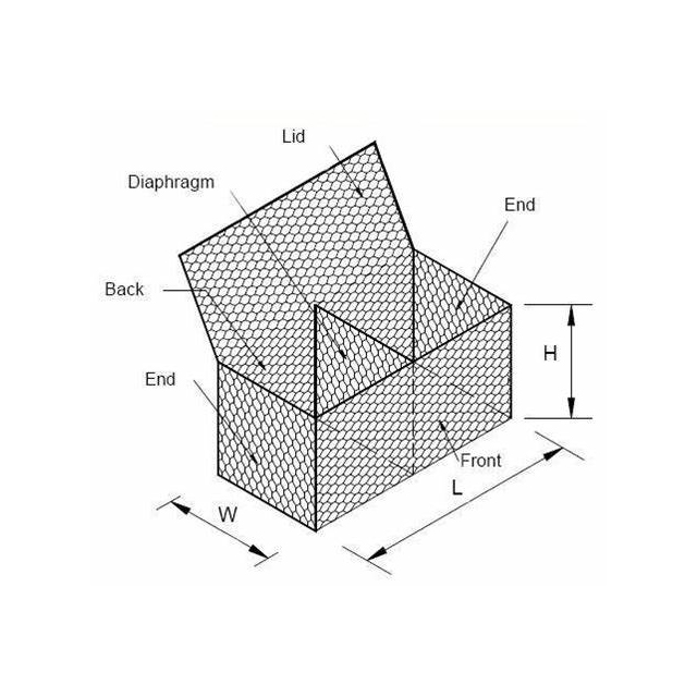 Gabions are wire containers made of hexagonal wire netting. The wire of the outside frame edge is one wire gauge thicker than the wire used for hexagonal wire netting.