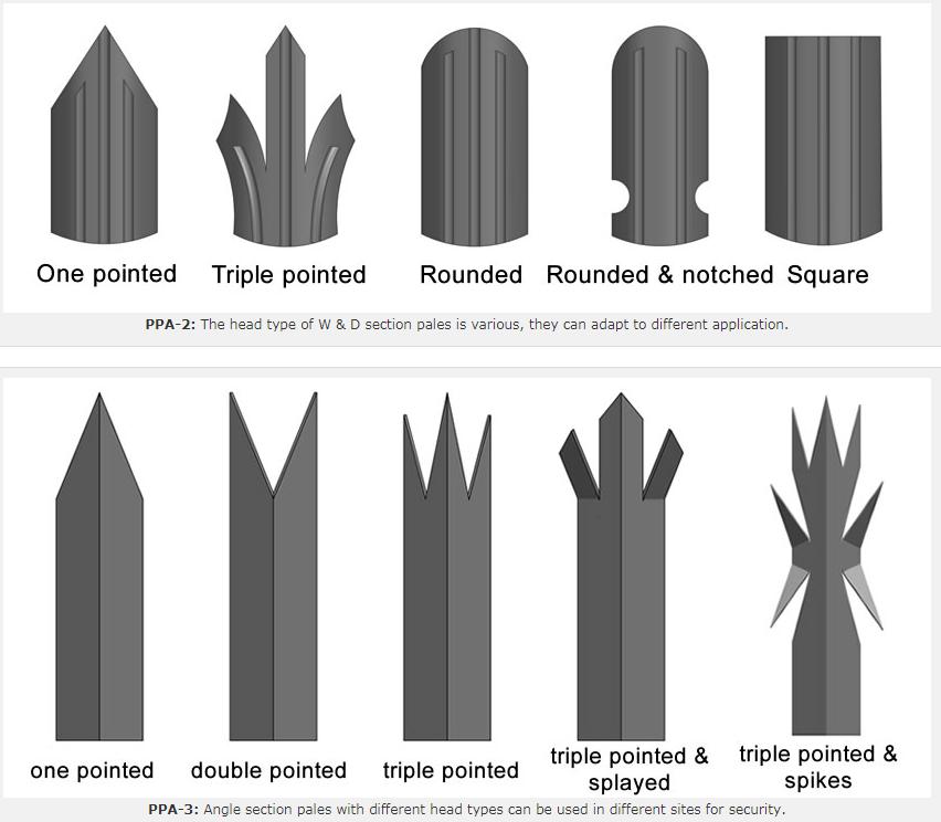 Palisade pales: The pales can be W section, D section and angle section.